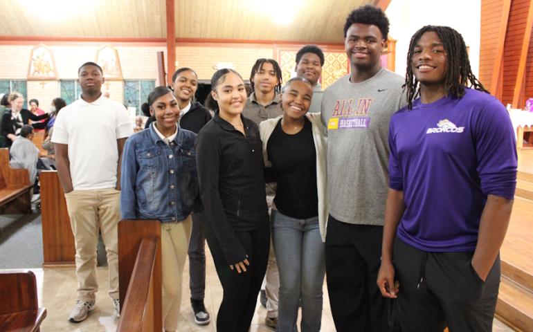More activities were scheduled this year for Catholic Schools Week to celebrate the school's families. At a home basketball game hosted that week, the high school senior athletes recognized their grandparents during halftime of the boys' game. The grandparents enjoyed free coffee and donuts from the athletic department and entered to win fun prizes. The Saint Katharine Drexel Miracle Fair was moved from the traditional March 3rd date to the week's activities. The school hosted it's fair earlier, so the winning entries competed at the Diocesan fair the following week. The Miracle Fair focuses on Saints. High school students created digital presentations of group work for judging. Senior Lauralyn Nez, a Miracle Fair participant, also was featured on social media as The Day In the Life of feature. Lauralyn shared her classes, friends, and activities of her typical day as a senior student.