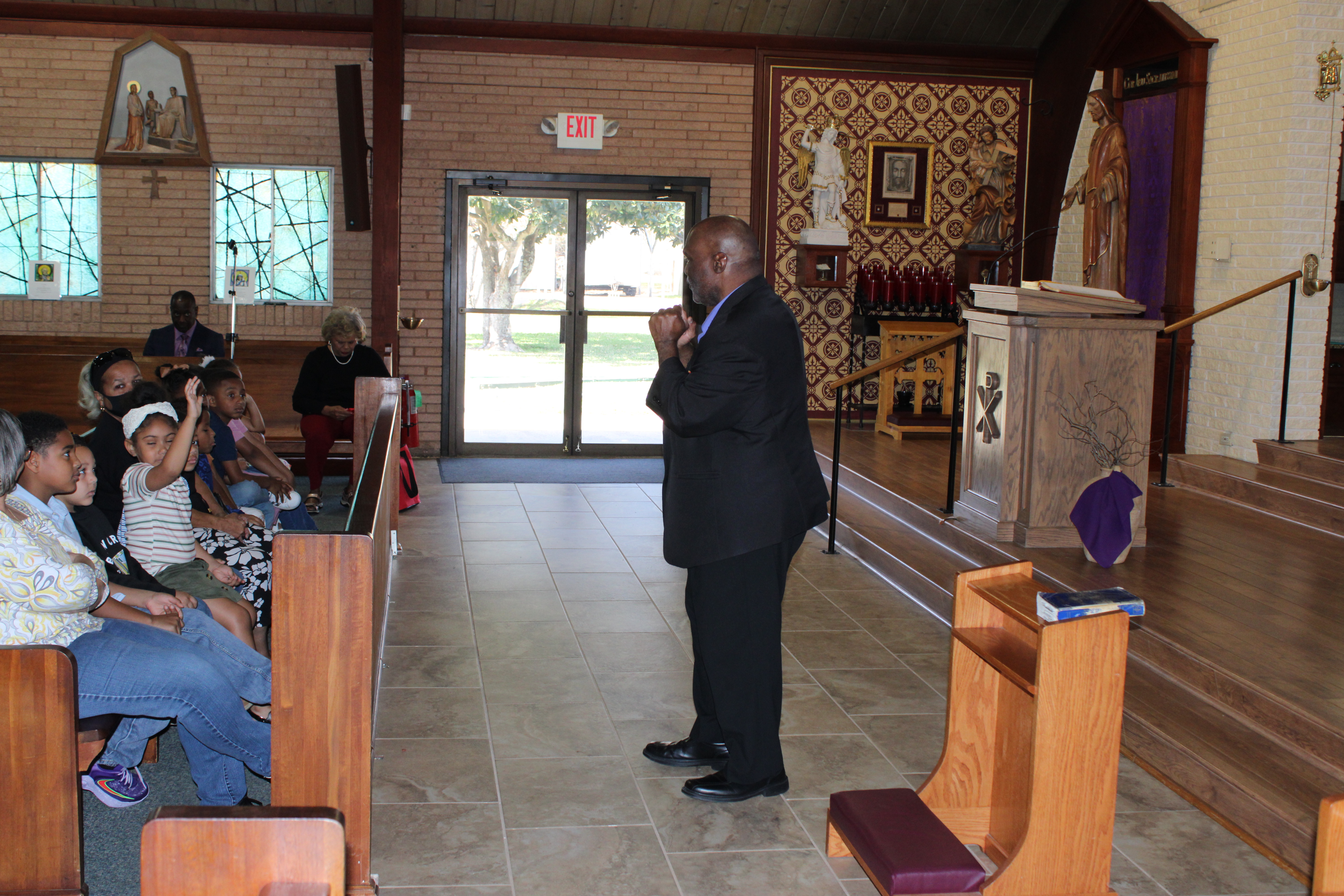 Deacon had the children so engaged and asking him questions, that he spoke until Mass time.at 11:00a. During Mass he gave an insightful homily and served at altar.