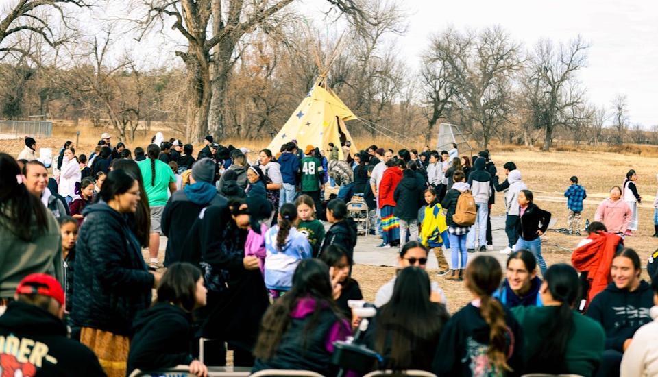 The meal continues until mid-afternoon concluding a full day of service that leaves guests comforted, students tired but deeply fulfilled. This tradition has become one of the most meaningful parts of the holiday season. Each year’s gathering continues to demonstrate the strength of the Maȟpíya Lúta community—students, staff, and families coming together to honor one another and give thanks in the spirit of wóčhekiye (prayer) and wówačhaŋtognake (generosity).